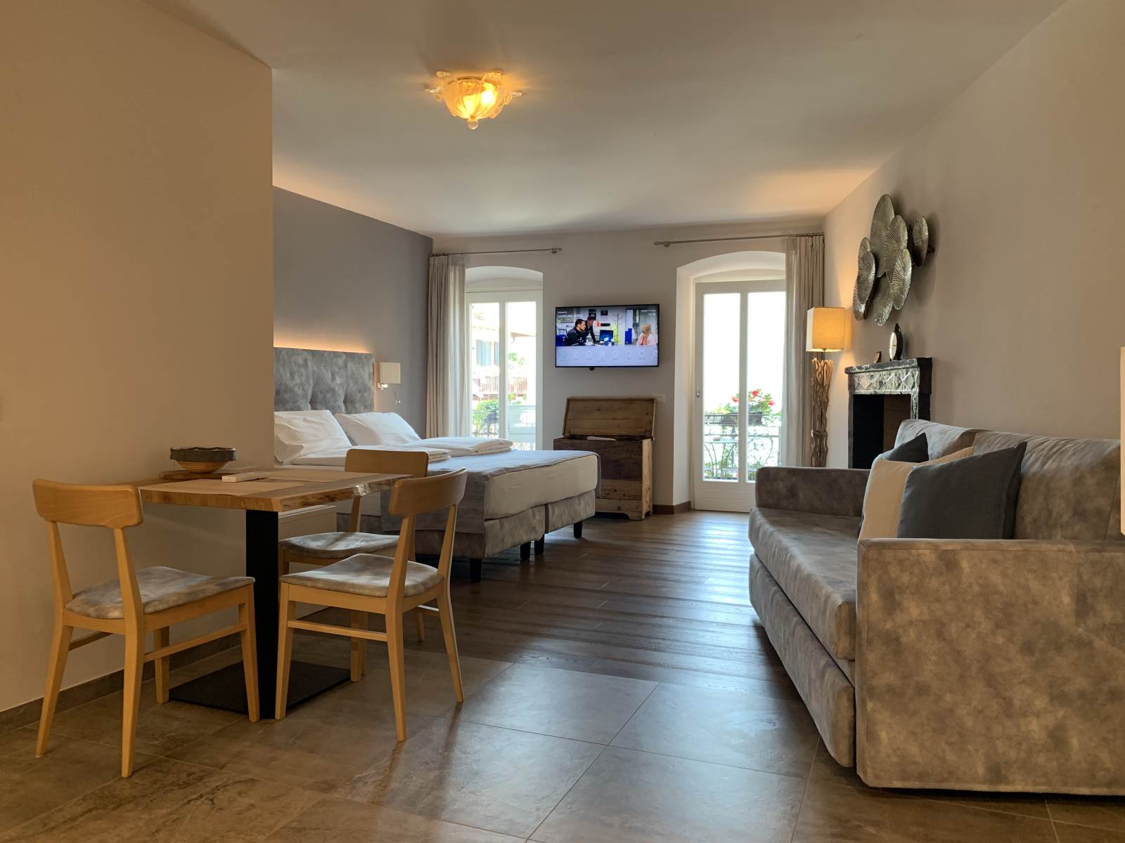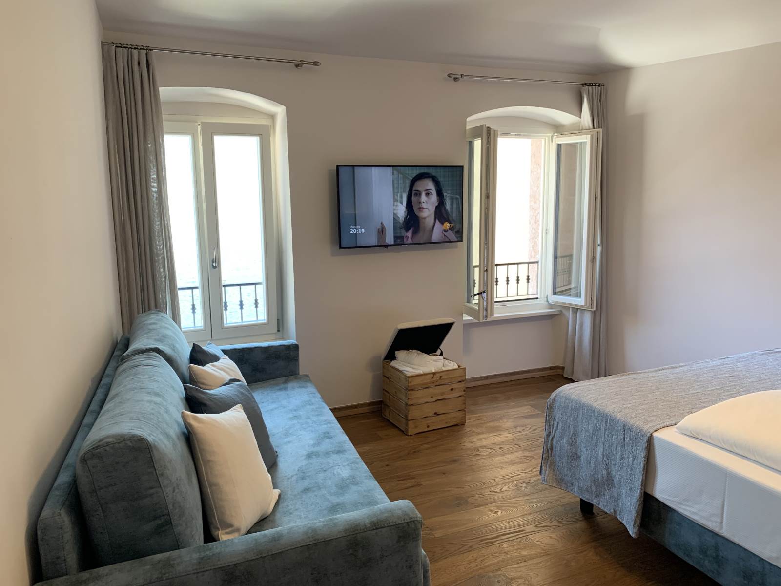The Standard Studios, in our newly renovated Dependance, have an entrance in an ancient courtyard, in the historic center of Limone, 100 meters from the Monte Baldo hotel.